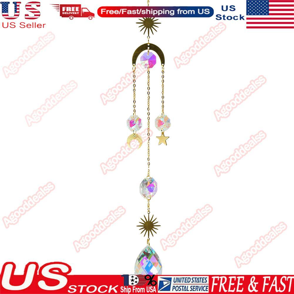 Iron Hoop Moon Sun Crystal Pendant Wind Chime Hanging Drop Garden Decor D Ebay